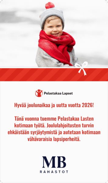 MB Rahastojen tiimi toivottaa hyvää joulunaikaa ja onnellista uutta vuotta 2026!